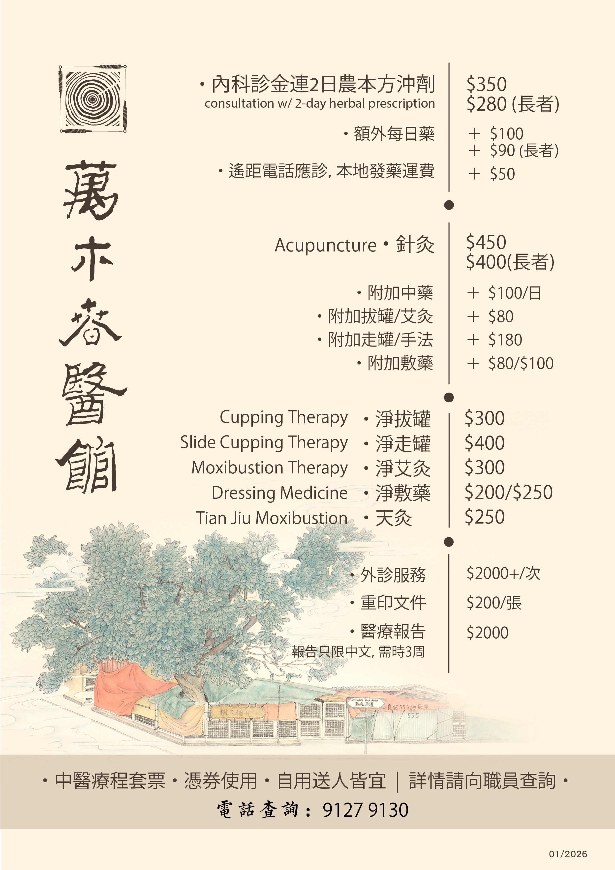 萬木春醫館以「清晰、透明」為宗旨,所有診金與藥費均清楚列明,絕無隱藏收費,讓患者能安心選擇合適療程。
